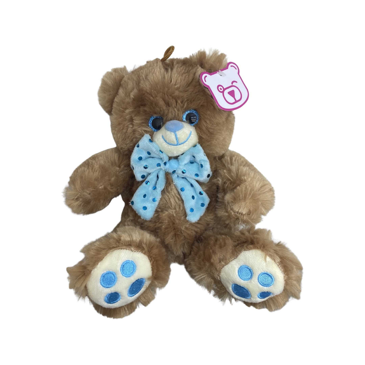 Ursulet din plus maro cu papion albastru cu dimensiunea de 20cm